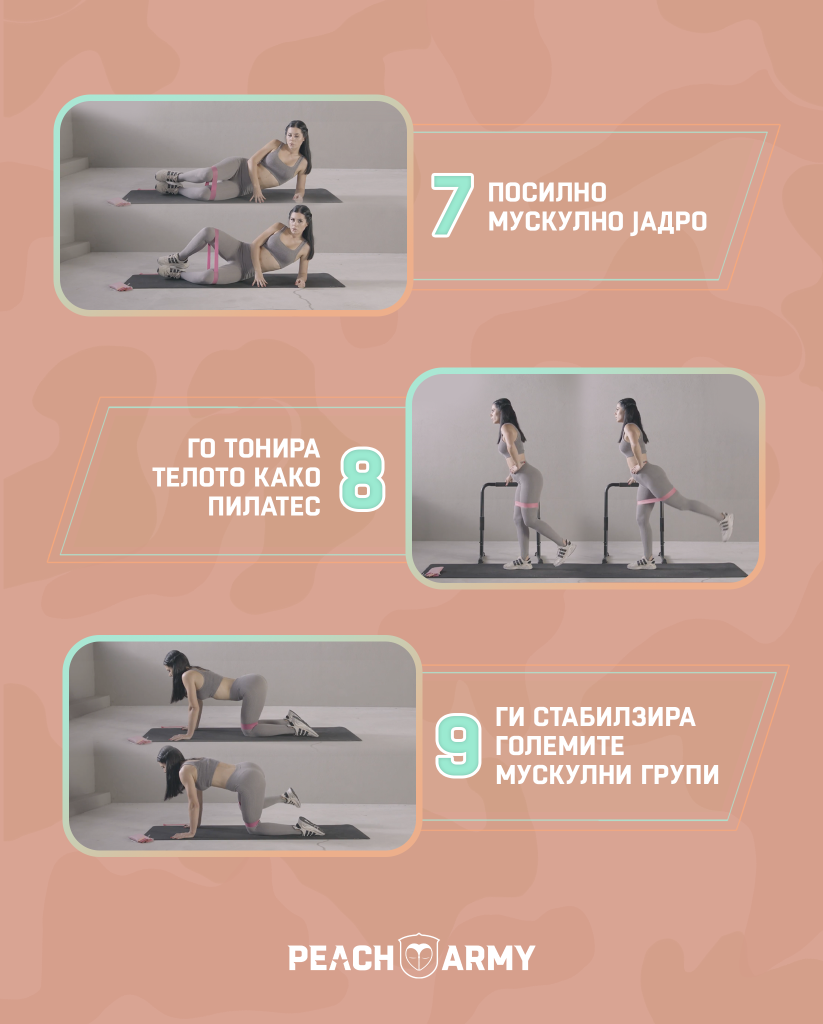 Ластиците ги користиме за вежби во скоро сите Peach Army програми и предизвици. Погледни ги нашите достапни програми тука https://peacharmy.mk/