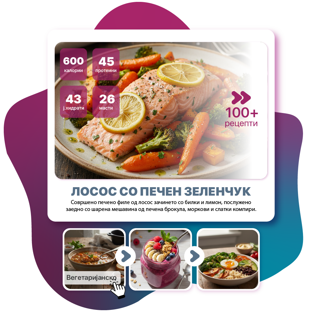 Целосен план со тренинзи, менија, рецепти, и поддршка