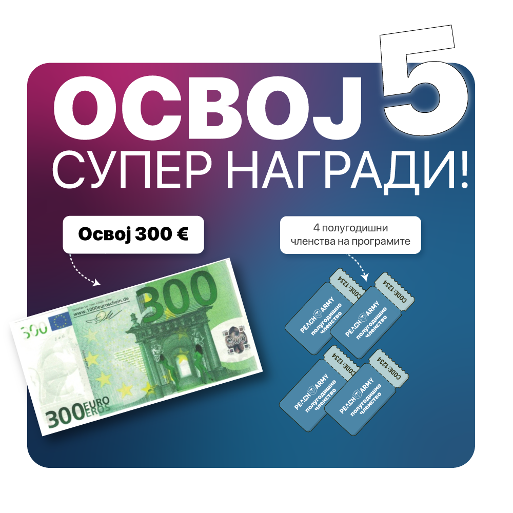 - НАГРАДИ: 300 евра за најдобрата BOOTY трансформација и 4 х Полугодишни Peach Army членства;