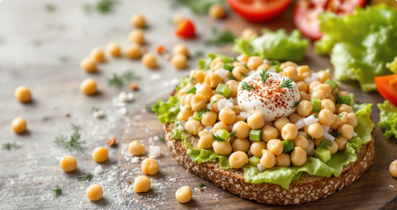 Состојки:70 г конзервиран наут (исцеден и исплакнат)20 г ситно сечкан кромид20 г ситно сечкан целер1 лажица грчки јогурт1 лажичка сенф½ лажичка сушен копар½ лажичка обичен…