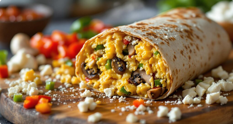 Состојки2 јајца4-5 сечкани свежи печурки1 сечкана зелена пиперка1 сечкана црвена пиперка1 лажички маслиново масло1 интегрална тортиља (загреана)30гр изронето фета сирење1 лажичка салса1 лажичка грчки јогурт…