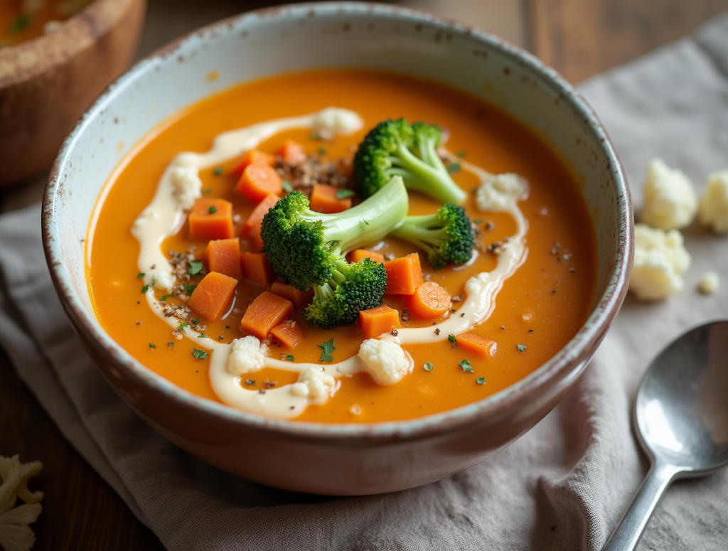 Состојки1 морков1 кромид100 гр сладок компир60гр портокалова леќацвет карфиолцвет брокулабило која супа во кесичка или коцка супа500мл вода1/2 канче грчки нискомасен Начин на подготовка: Се…
