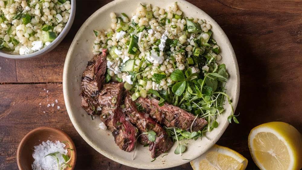 Состојки150 гр свинско/телешко чисто месо/Веге: 150 гр димено тофу3 полни лажици кус кусЗелена салата по избор Начин на подготовкаБифтекот е најмекото и највкусното месо, но…