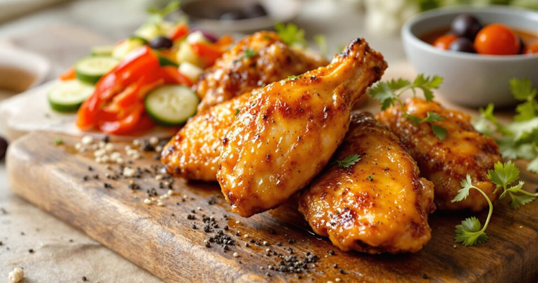 Состојки:5-6 мали пилешки крилца1 лажичка маслиново масло3 лажичка доматен сос1 лажичка мед1 лажичка лук во прав1 лажичка мелена пиперка1 шолја варена пченкасол и бибер по…
