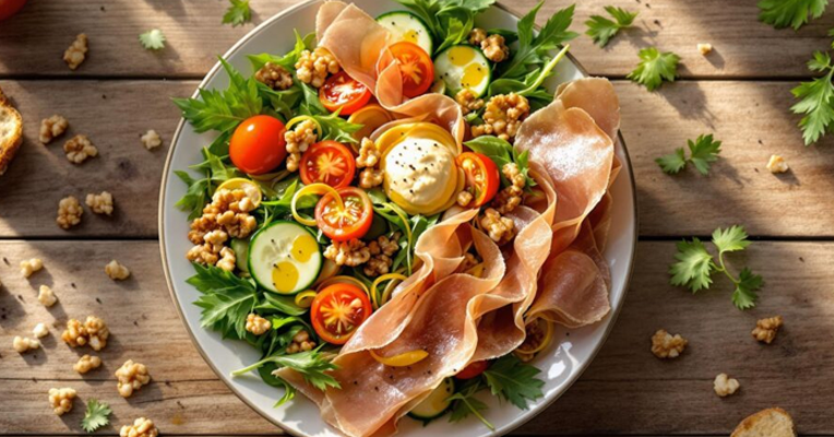 Состојки:1 рака рукола1 парче интегрален потпечен леб (околу 30–40 г)30–40 г пршута (на ленти)1 лажица дробен орев (10 г)1/2 краставица (на ленти)5–6 шери домати (преполовени)1…