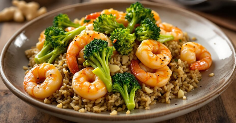 Состојки:100 г ракчиња (чистени)100 г брокула (свежа или замрзната)50 г интегрален ориз1 лажичка соја сос (нискосолен)1 чешне лук (ситно исецкан)1 лажичка свеж ѓумбир (рендан)1 лажичка…