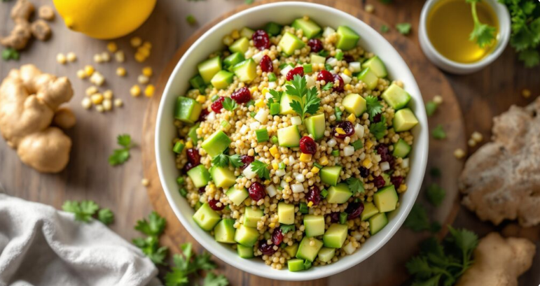 Состојки:– 1 лаж маслиново масло– 1 лажичка рендана кора од лимон– лимонов сок– 1 лажичка свеж ѓумбир, ситно сецкан– 1 лажичка сол– 250 мл зеленчуков…