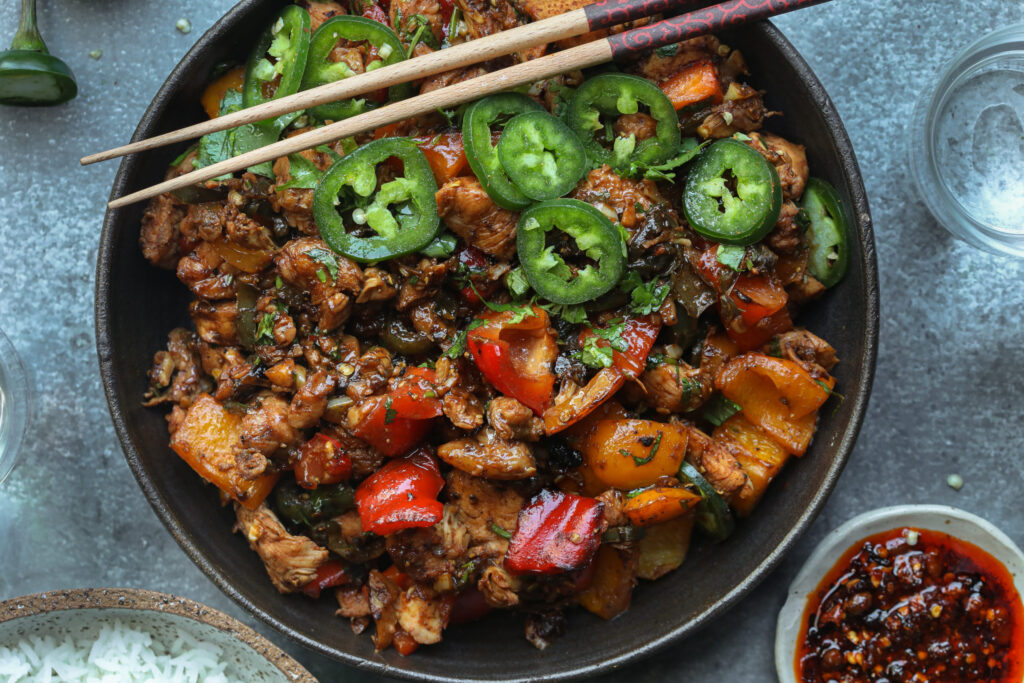 Состојки150гр пилешко/ Веге: 150гр тофу или сејтан во зачини1 црвена пиперкалуклута пиперка по желбакромид1 лажица соја сос Начин на подготовка: Се сечка и се пржи…