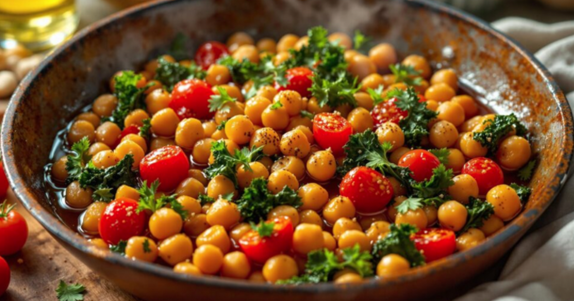 Состојки: 50 г наут сиров, или 100гр од тегла150 г шери домати2 чешниња лук, сецкани2 см свеж ѓумбир, изрендан1 грст свежи листови кељ1 лажиче маслиново…