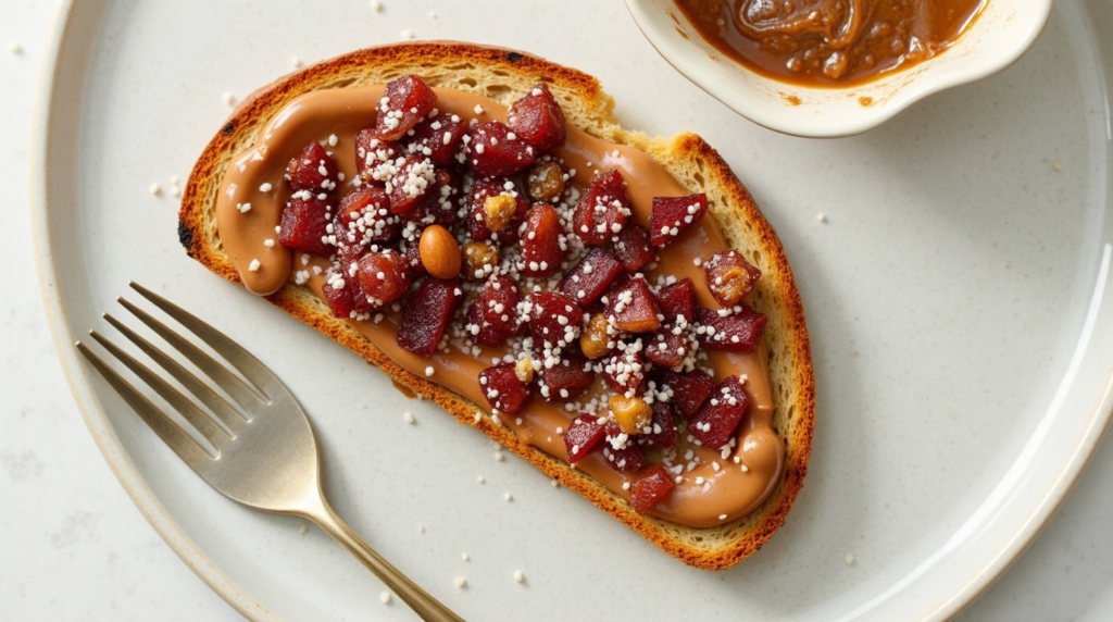 Состојки: Начин на подготовка: Намачкајте го бадемовиот путер на парчињата тост. Додадете го џемот од чиа врз бадемовиот путер. Прилагодување за мускулна маса: Користете 3…