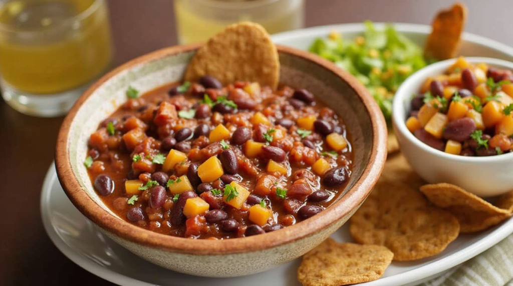 Состојки: Начин на подготовка: Сварете го слаткиот компир додека не омекне. Додадете ги гравот, доматите и зачините. Оставете да се динста на тивок оган околу…