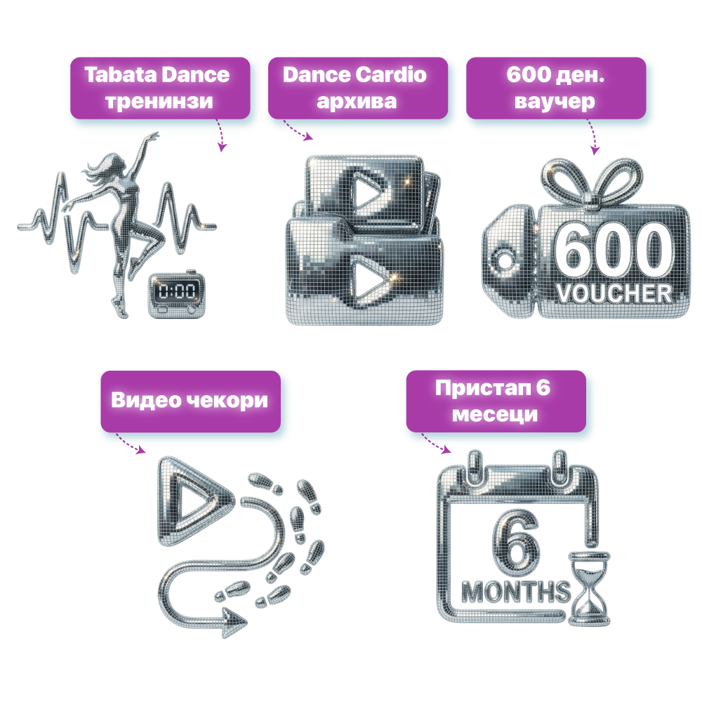 - 6 месеци целосен пристап до Dance Cardio, наместо стандардните 2 месеци (повеќе време = повеќе резултати)