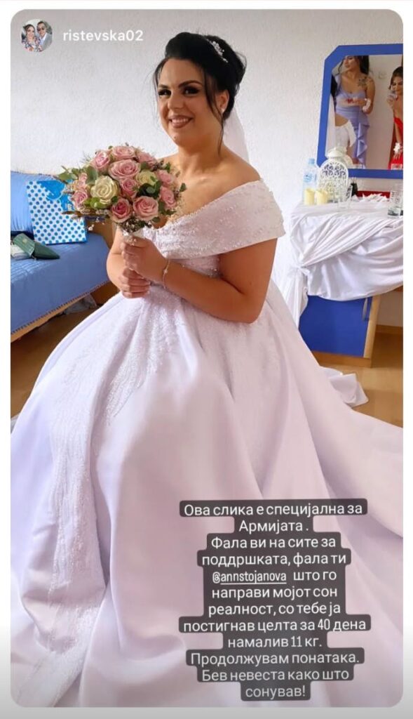 Во Јули некаде, случајно се сретнавме во салонот за убавина кадешто работи и сподели дека сака да ослабе бидејќи ќе прави свадба на 2ри Септември.