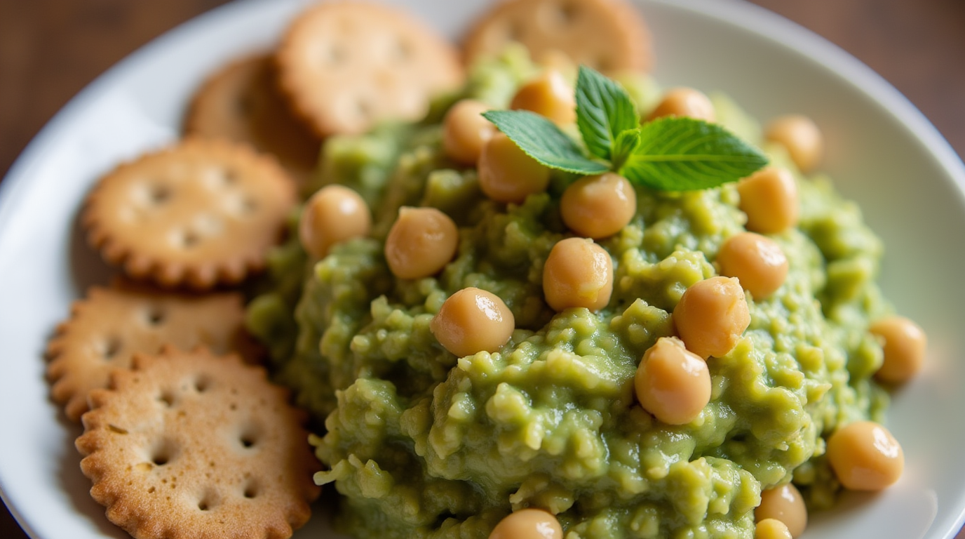 Состојки за каша: Во сад изгмечете ги наутот и авокадото заедно.