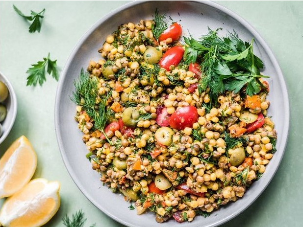 Додадете 100 грама варено пилешко или туна за дополнителни протеини. Користете киноа наместо кус кус за поголема протеинска вредност. За повеќе здрави масти, додадете парчиња авокадо или повеќе маслинки.