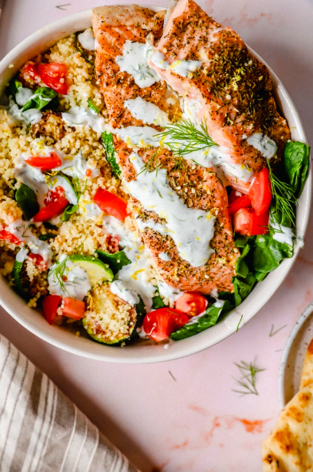 Додадете 100 грама варено пилешко или туна за дополнителни протеини. Користете киноа наместо кус кус за поголема протеинска вредност. За повеќе здрави масти, додадете парчиња авокадо или повеќе маслинки.