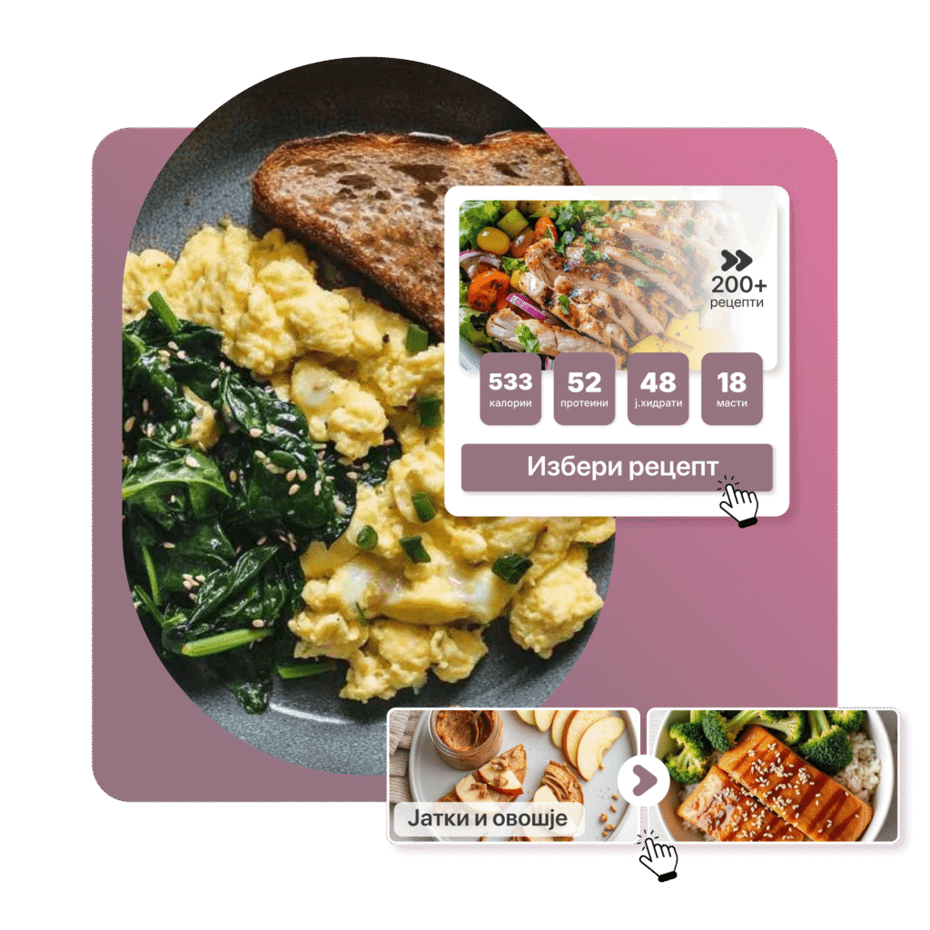 Во MamaFIT програмата ќе добиеш повеќе од 200 ВКУСНИ, БРЗИ РЕЦЕПТИ, (прилагодени за доилки) распоредени по денови и неделна шопинг листа за поекономично пазарување. НОВО: Ќе имаш и поедноставено/економично мени + насоки како еден рецепт да биде адаптиран за целото семејство.