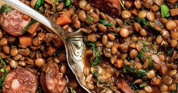 Да, можете да замените леќата со наут или црн грав. Спанаќот може да се замени со други зелени лисни зеленчуци, како што се блитва или кељ.