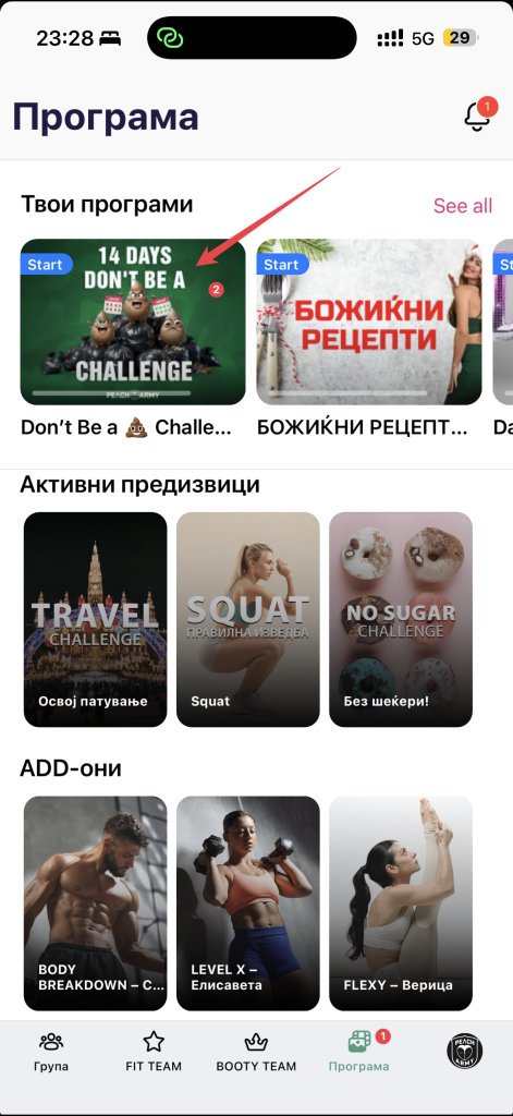 Откако ќе се најавиш во апликацијата ќе ја најдеш групата за предизвикот
