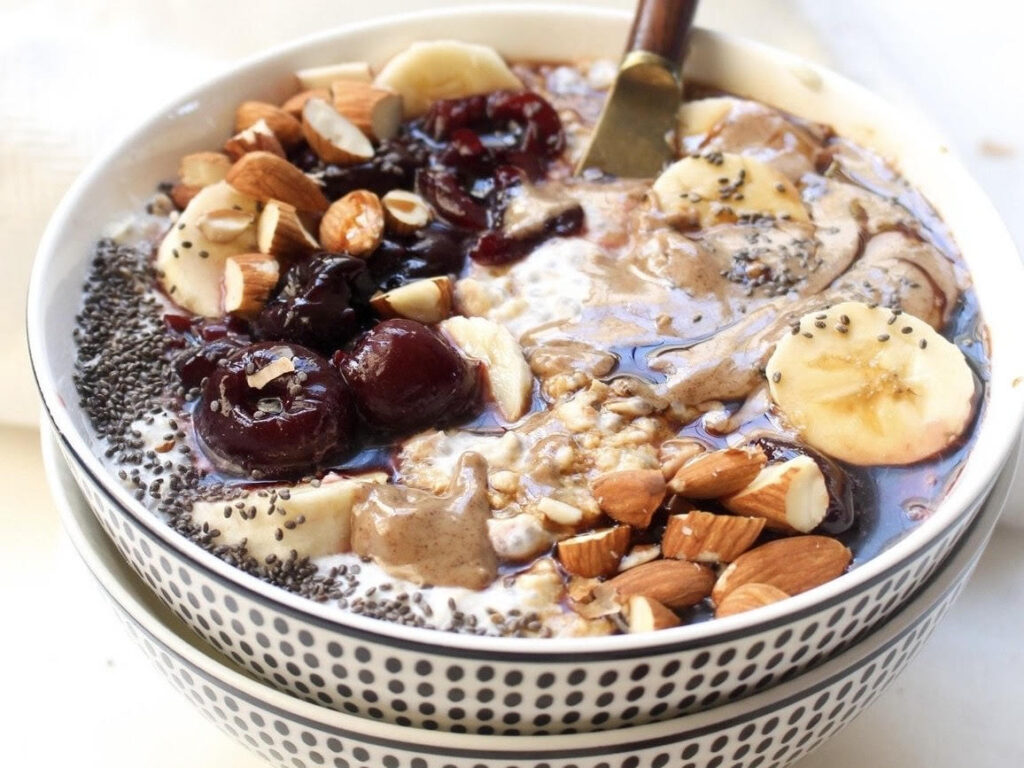 Сварете ги овесните снегулки со вода или бадемово млеко по избор додека не добиете кремаста текстура. Додадете кикирики путер и промешајте. Послужете со парчиња банана врз кашата и чиа семе.