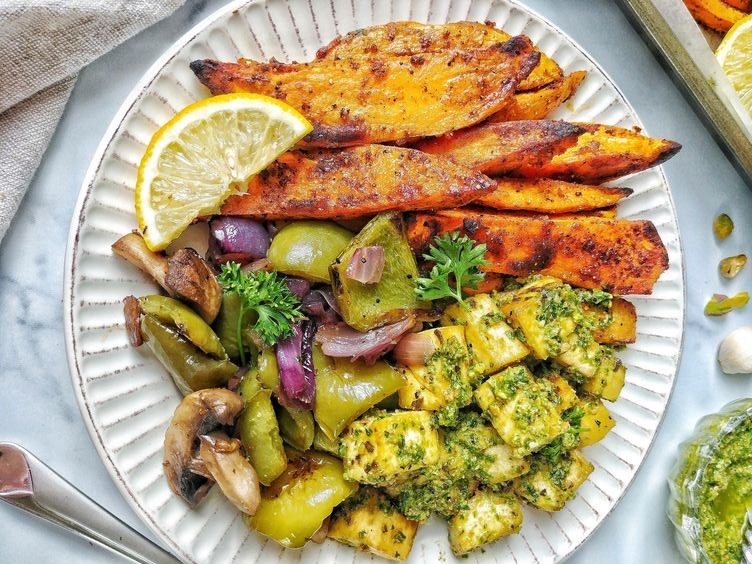 - Исецкајте ги сите зеленчуци и ставете ги на хартија за печење. Ставете ги во рерна да се печат на 180°C за околу 20-25 минути, додека не омекнат и добијат златна боја.