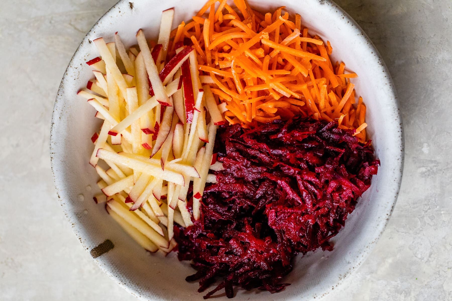 Начин на подготовка: Да го завршиме свежо првиот ден од неделата со една салата која ги гали сите сетила, а најмногу му годи на нашиот стомак. Зеленчукот се ренда, а потоа салатата се зачинува.