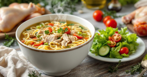 Комбинирајте ги состојките: Во тенџере, додадете супа, зеленчук и домати.