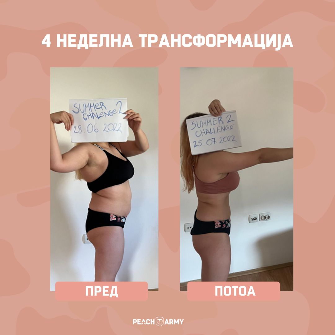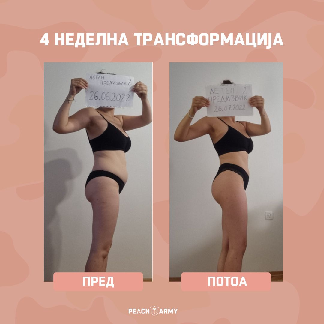 Добредојде на местото каде што искрено се надевам дека ќе добиеш мотивација. Горда сум на “армијата“ од девојки и жени што сакаат пред се да бидат здрави, а потоа и да се чувствуваат убаво, самоуверено и успешно. Пред да те поканам да “скролнеш“ надолу за да разгледаш, сакам само да го додадам она што го велам често: ⚠️ Секој добар тренер ќе направи план за исхрана и вежби….Но…Не секој знае како да те натера да го засакаш тренингот и уживаш во процесот, а најважно од сè → да те донесе до целта ❤