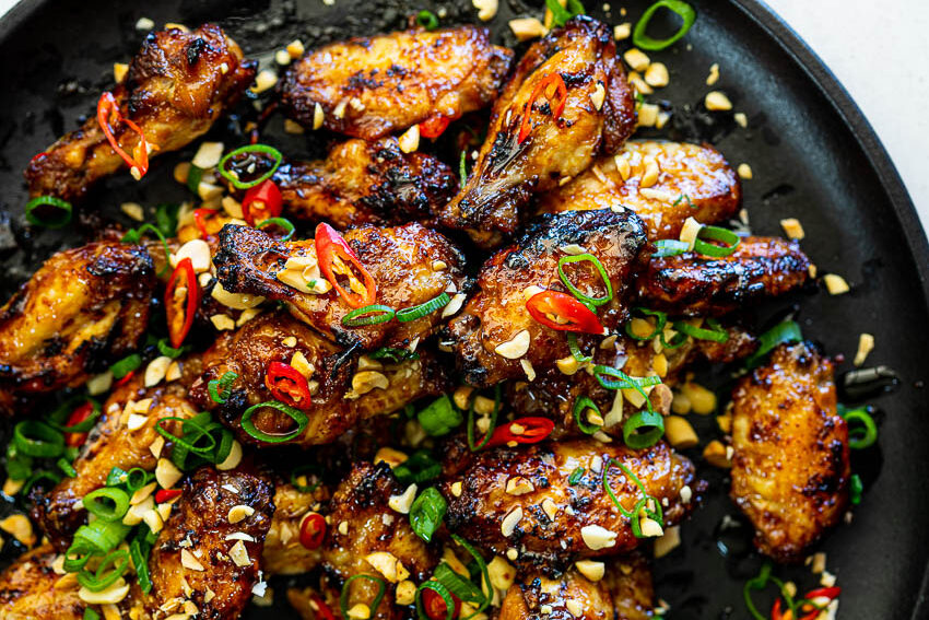 Распореди ги крилцата на решетка за печење или во тава со хартија за печење. Печи ги 20-25 минути, додека не добијат златно-кафеава боја.