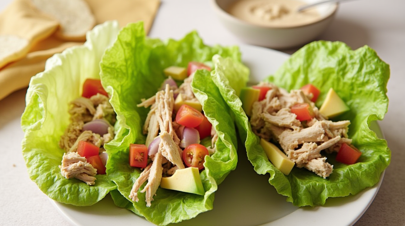 Направете Врап од салатата: Земете лажица од смесата и ставете врз листови зелена салата.